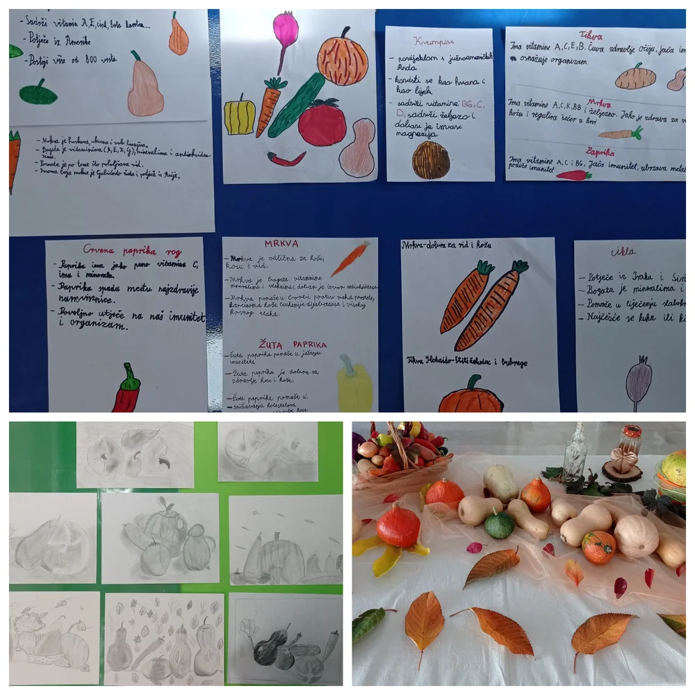 Učenici razredne nastave postavljali su izložbene stolove i sudjelovali u mnoštvu aktivnosti kao što su igrokazi i obrađivanje narodnih priča. Stol s temom voća pripadao je našim malim prvašima, koji su također ispekli kekse te oblikovali peciva od plastelina. Tema učenika drugih razreda bile su jabuke, što se može zaključiti prema mnoštvu različitih sorti izloženih na njihovu stolu. Pregršt šarenog povrća na svoj stol postavili su učenici trećih razreda, dok su četvrtaši obradili temu kruha i žitarica.