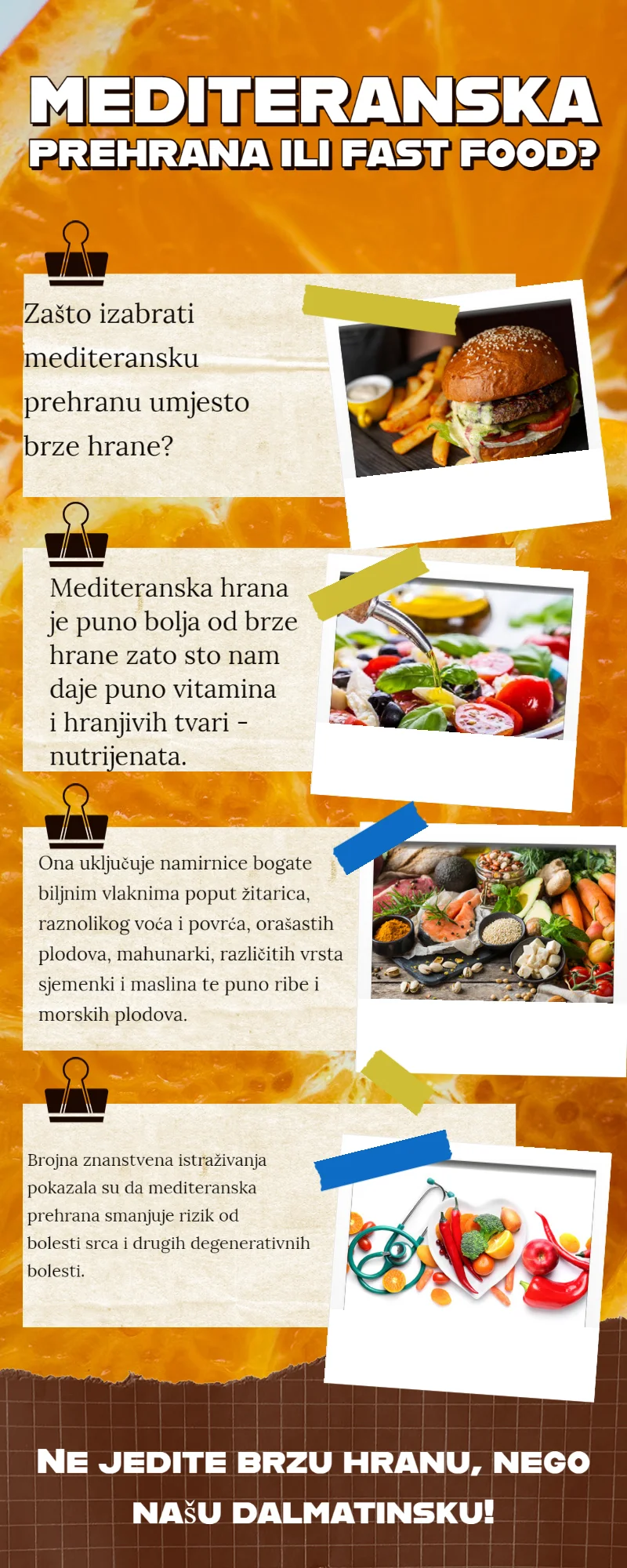 Učenici predmetne nastave sudjelovali su u različitim radionicama. Učenici petih razreda izradili su plakat na kojem su prikazali što žele jesti i što bi trebali jesti te su pripremili zdravi obrok, koji su na kraju i degustirali. Šesti razredi sudjelovali su u radionici „Odakle nam stiže hrana“, u kojoj su neke od aktivnosti bile rasprava o načinu transporta hrane do našeg stola te izrada interaktivne karte. Sedmaši su slagali svoj dnevni meni od ponuđenih namirnica i procjenjivali količinu šećera i masti koju sadrži njihov meni. Učenici osmih razreda, nakon proučavanja mediteranske i brze prehrade, izradili su edukativne virtualne plakate kojima su prezentirali rezultate svoga rada.