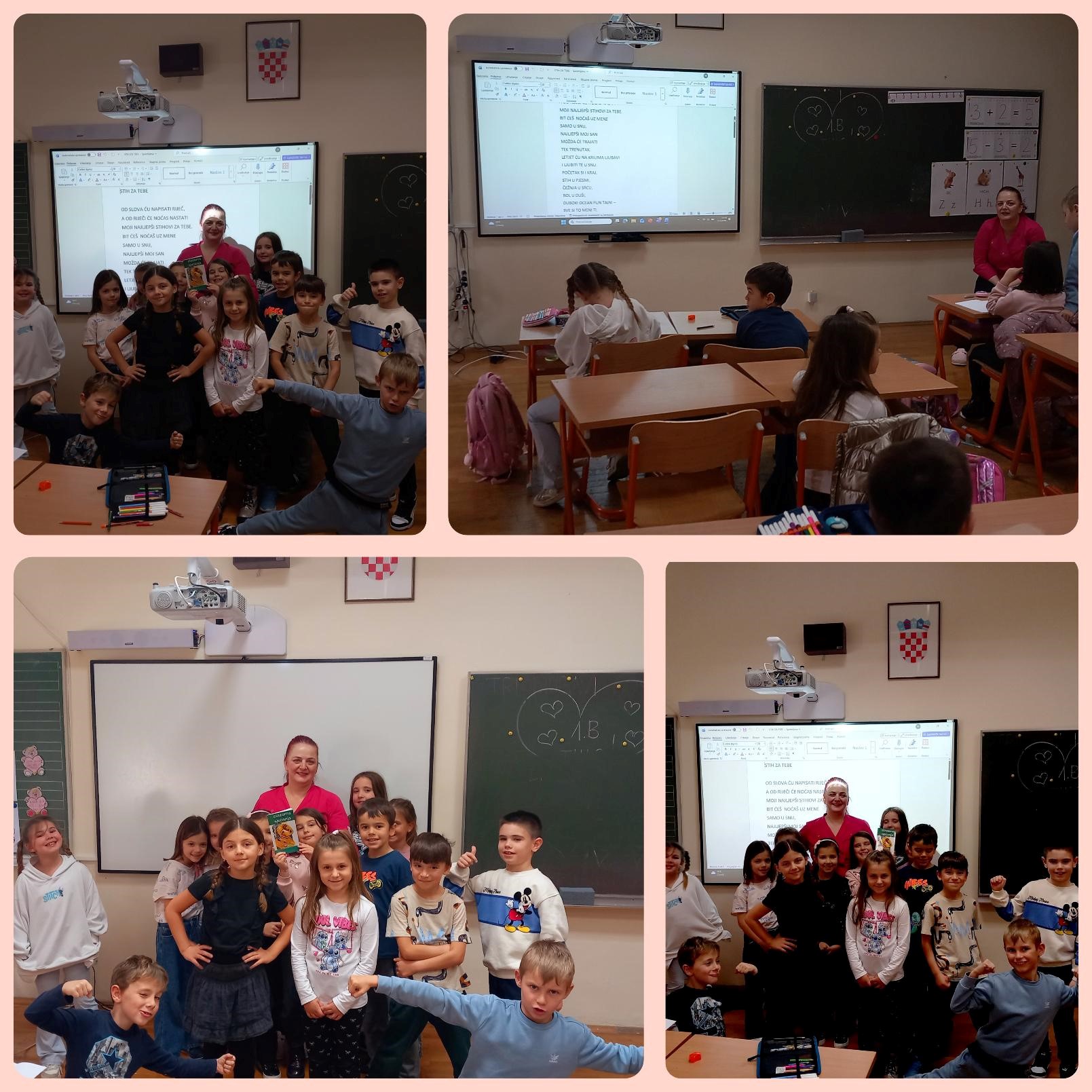 Učenici 1. b razreda produženog boravka obilježili su Valentinovo susretom s našom školskom kuharicom i pjesnikinjom Jelenom Vranjić. Učenici su imali priliku prelistati zbirku poezije „Stazama sjećanja“ Jelene Vranjić te smo zajedno pročitali njene dvije pjesme. Kroz pjesme o ljubavi i prijateljstvu učenici su uronili u svijet Jelenine poezije. S velikim zanimanjem učenici su postavljali i odgovarali na pitanja kuharice. Na kraju su se pojedini učenici dosjetili kako bi voljenim osobama mogli pokloniti svoje pjesme za Valentinovo. Također, zajedno smo došli do zaključka kako ljubav prema dragim osobama možemo iskazati na različite načine. Učenici su tako jednim velikim zajedničkim zagrljajem zahvalili našoj kuharici što nas je posjetila u razredu i svojim pjesmama uljepšala Valentinovo.