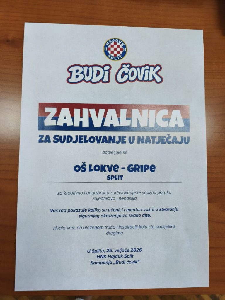 Finale kampanje odvijalo se 25.2.2026. u prostorijama Nogometnog kluba Hajduk na Poljudu. Sudjelovale su 43 škole iz četiri županije. Naša Škola je s video uratkom ušla u visokih top 5 uradaka.